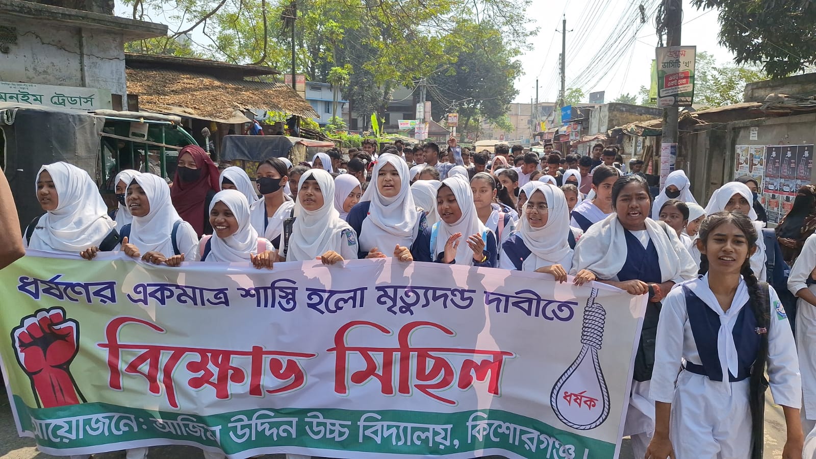 ধর্ষণের একমাত্র শাস্তি মৃত্যুদণ্ডের দাবিতে কিশোরগঞ্জে বিক্ষোভ মিছিল